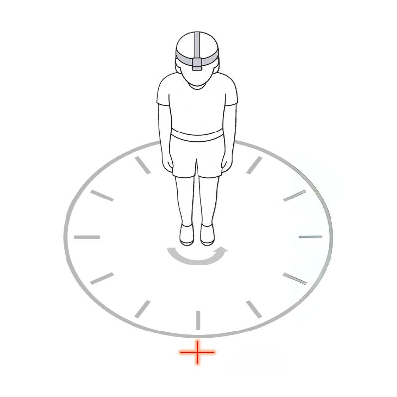Esto entrena la capacidad de reorientar rápidamente la postura y la posición de la cabeza en cualquier dirección, al tiempo que refuerza la conciencia de la línea media y la recuperación del equilibrio.