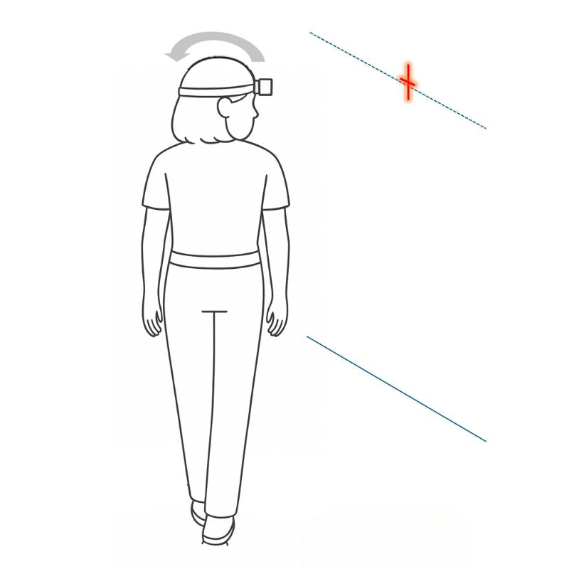 Use la linterna frontal hacia atrás, de modo que la cruz quede proyectada detrás de usted.