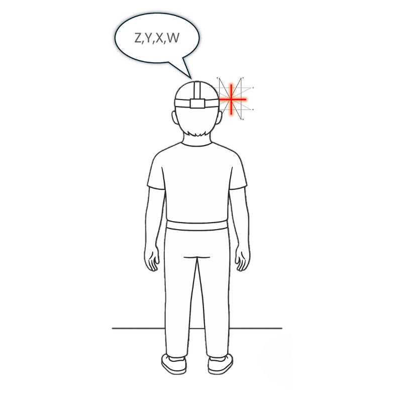 Párese frente a una pared en blanco mientras un compañero usa una linterna para iluminar brevemente puntos aleatorios alrededor de un punto central.