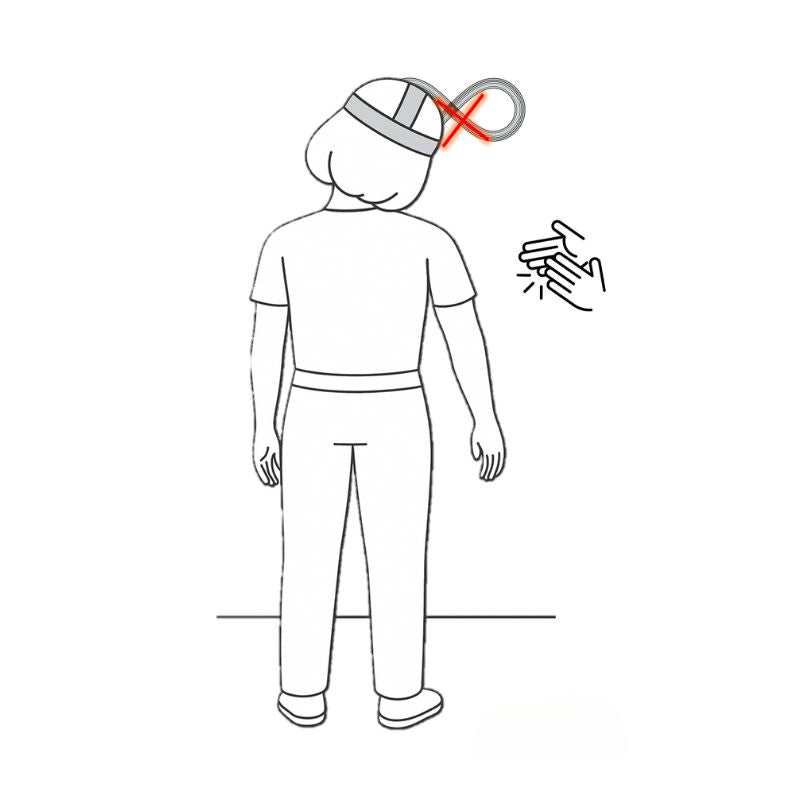 Traza un bucle infinito horizontal de forma lenta y suave utilizando únicamente el movimiento de la cabeza, manteniendo la cruz alineada con la línea en todo momento.