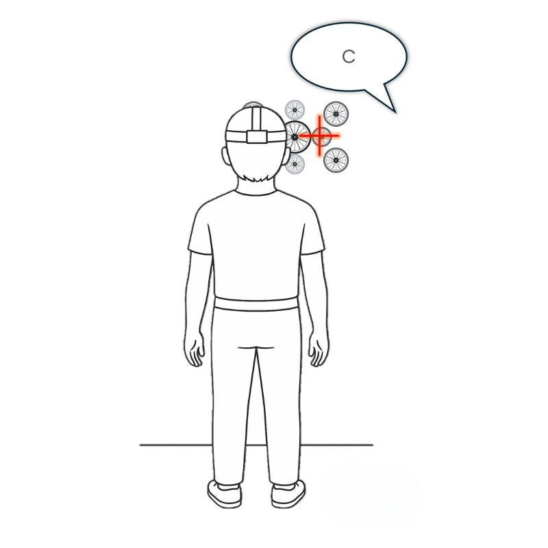 Al escuchar un código, mueva rápidamente la cabeza para alinear la cruz con el objetivo correspondiente y luego regrese al centro.