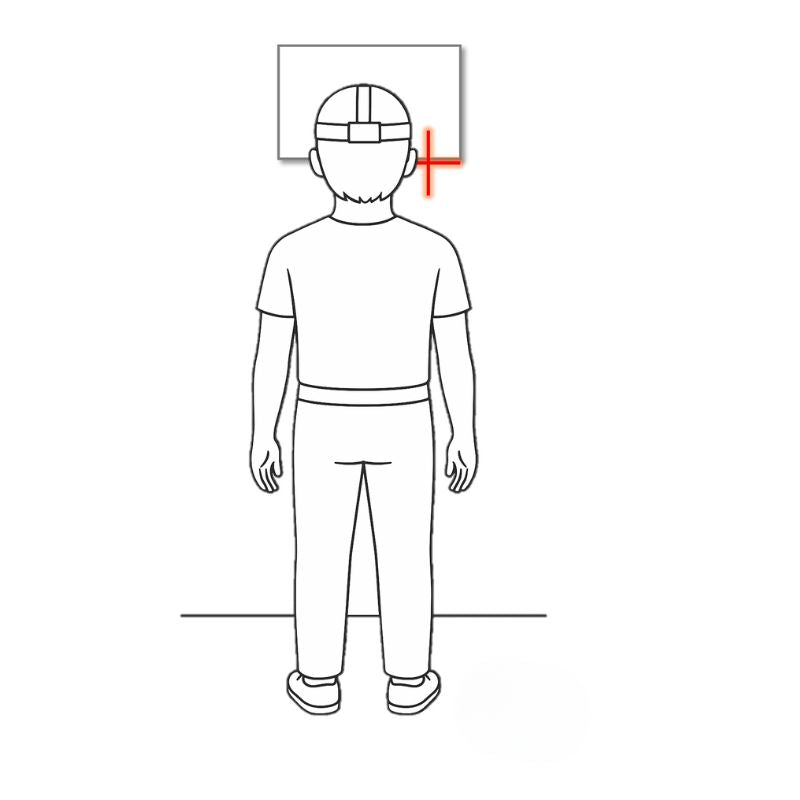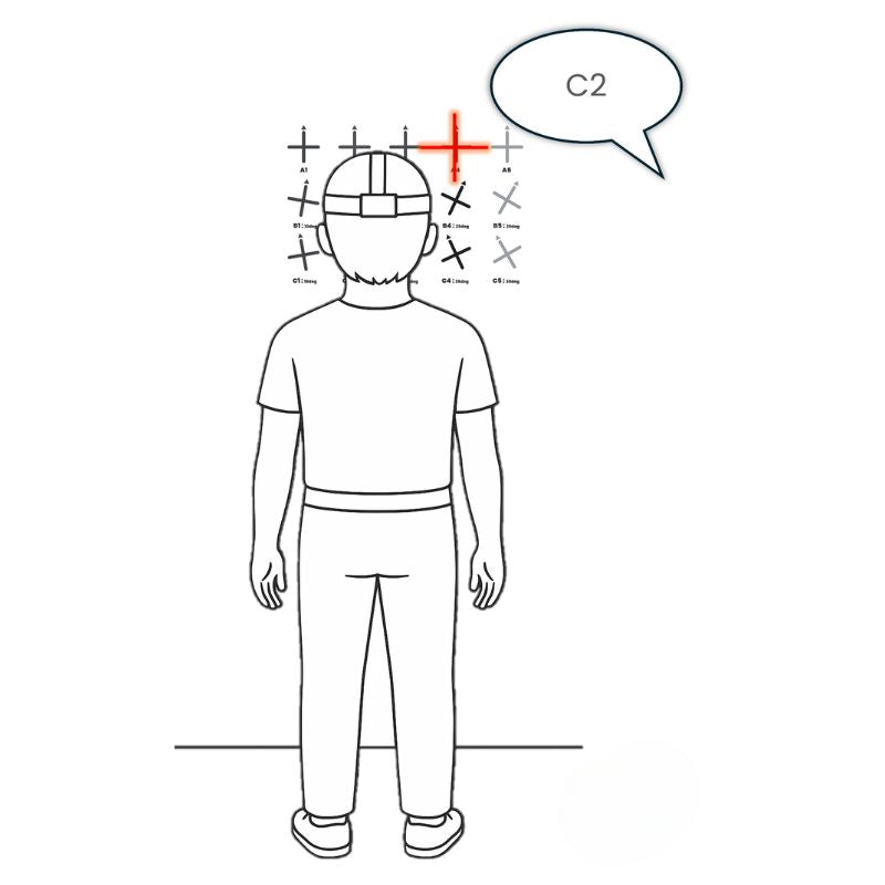 Colóquese frente a una pared que muestre los objetivos en forma de cruz en ángulo (A1–C5).