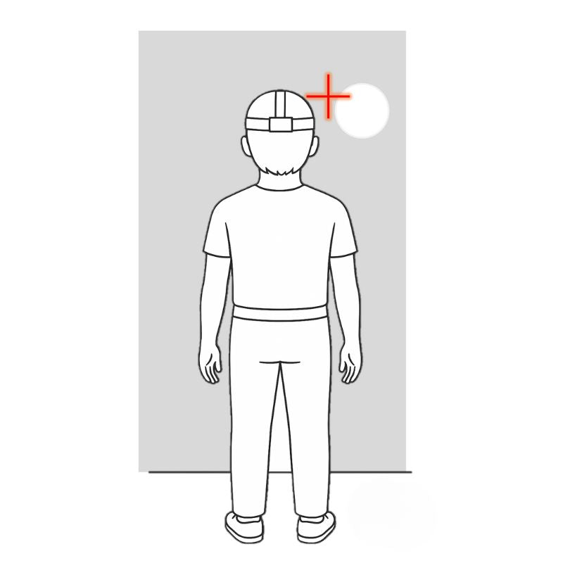 Cada vez que aparezca la luz, mueva rápidamente la cabeza para alinear la cruz con el área iluminada y luego regrese al centro.